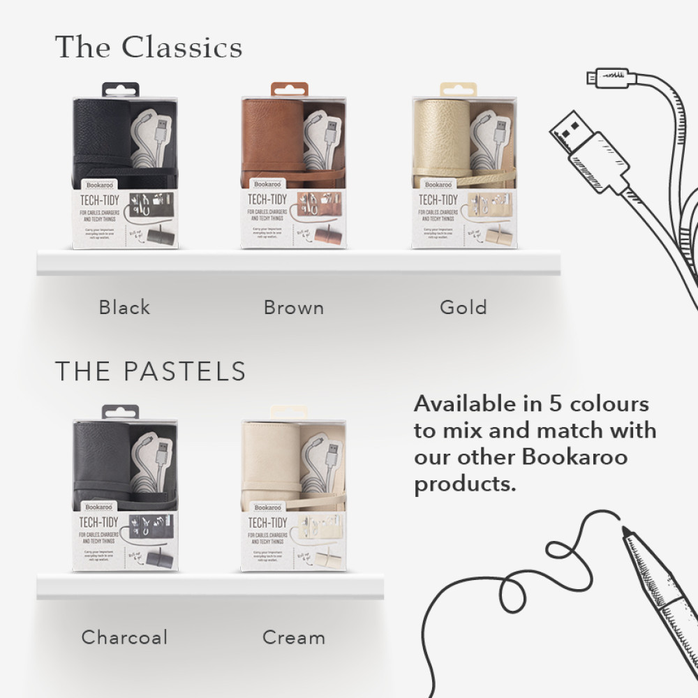 Modern digital life means wrestling with an assortment of wires, cables and chargers everyday - if we want to stay connected! This smart and versatile roll-out case is designed to neatly hold your cable spaghetti in the most stylish un-techy looking way. Anyone would be proud to be seen carrying this little accessory. Great for travel too! Product in packaging: 12 x 4.5 x 18.5cm