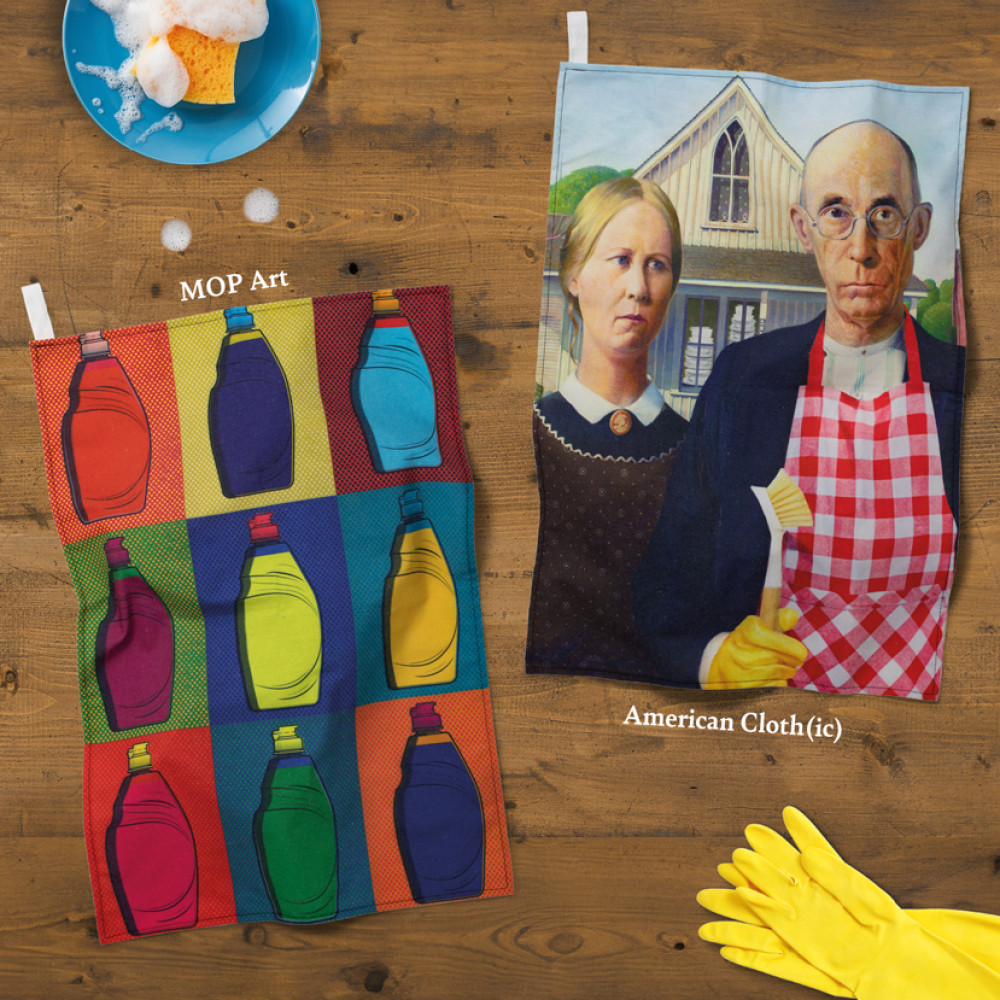 A classic gift for the more discerning washer-upper! Turn your galley (kitchen) into a gallery or (more traditionally) dry the pots in style. This collection of 100% cotton tea towels are printed depicting a dish-washing twist on a classic painting. Amusing AND you can dry the dishes with them. What's not to love?