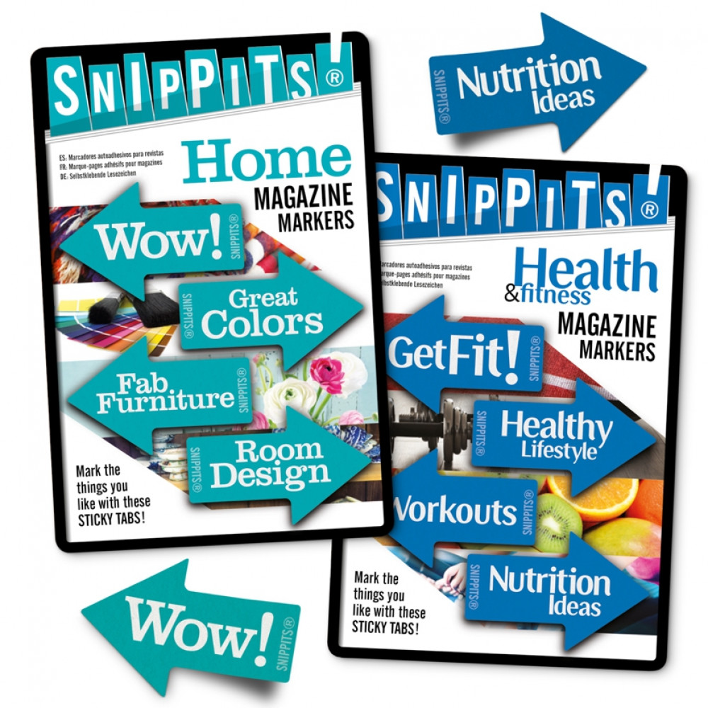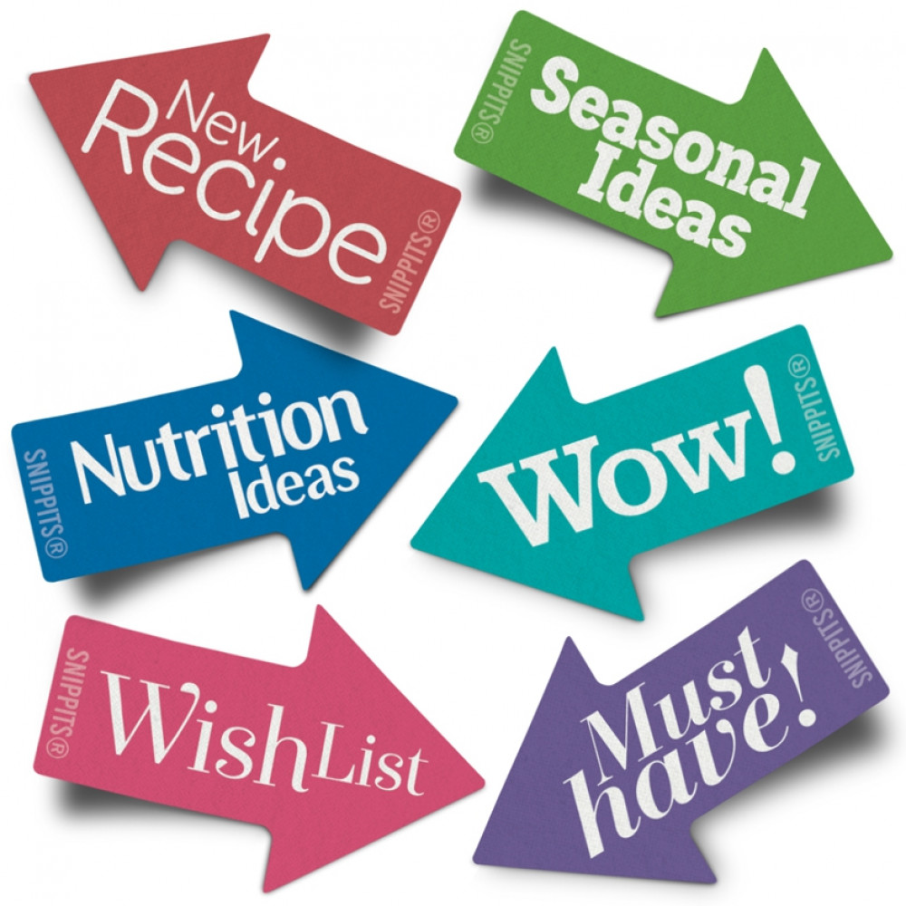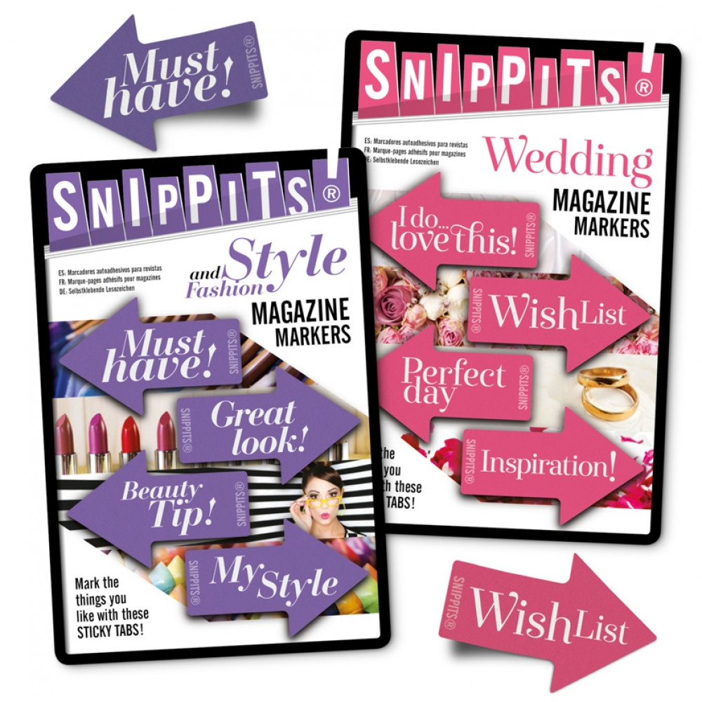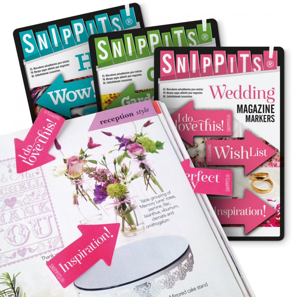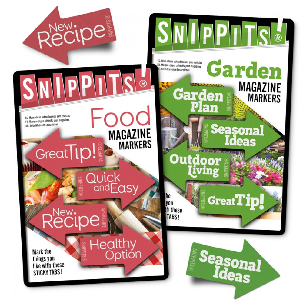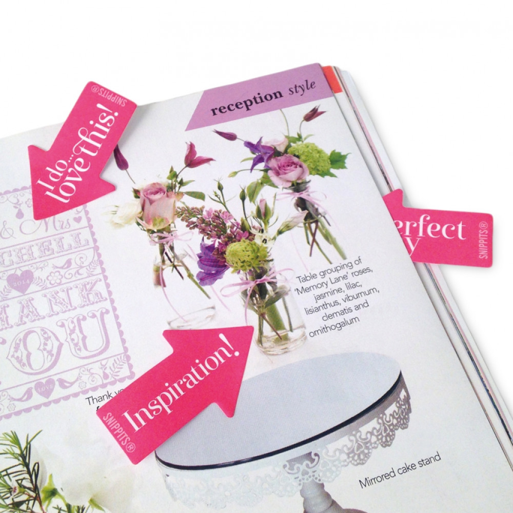 Themed sticky tabs for projects, shopping, ideas, hints and tips! Whenever you find something you like in your magazine have Snippits® at hand to catch the moment and mark the page. Available in 6 popular themes, these self adhesive arrow markers will help you keep track of the good things in life.