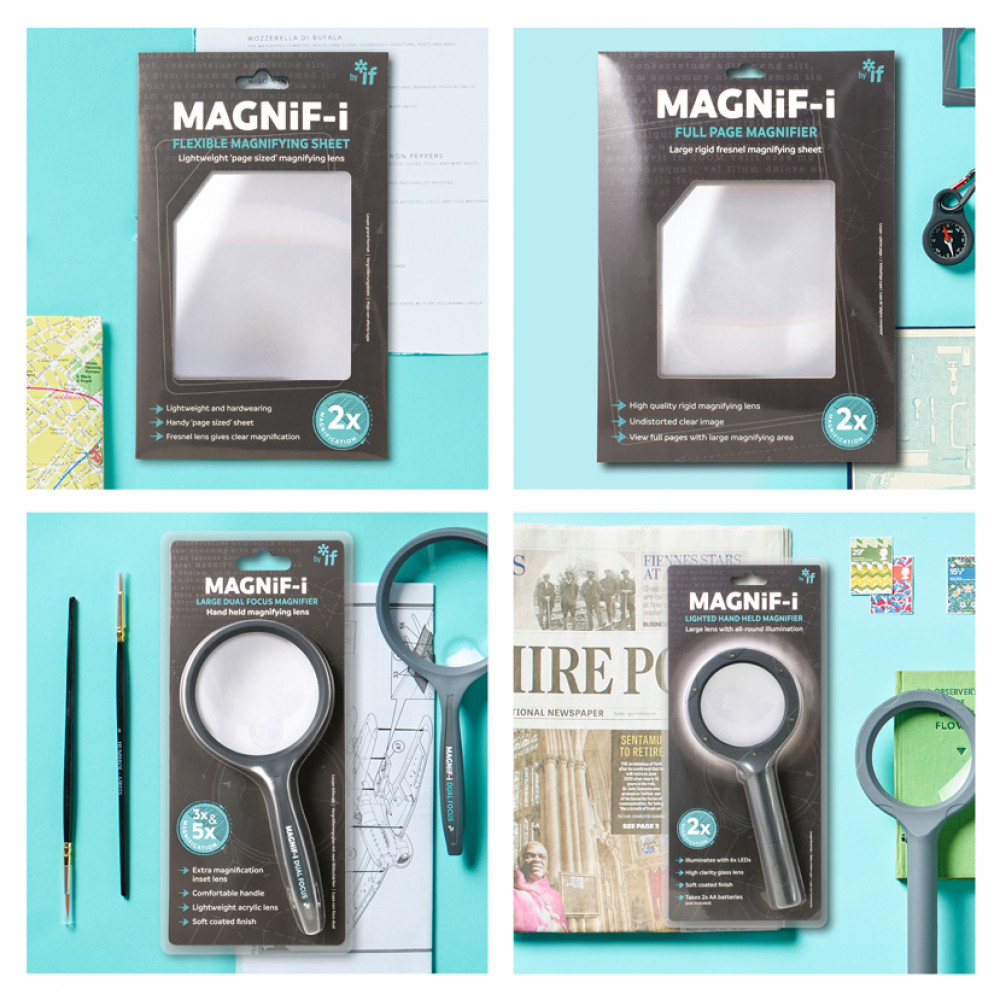 Contains:6 x MAGNiF-i A5 Sheets6 x MAGNiF-i A4 Sheets6 x MAGNiF-i Magnifying Bookmark6 x MAGNiF-i Credit Card Magnifier6 x MAGNiF-i Pocket Lighted Magnifier3 x MAGNiF-i Professional Loupe3 x MAGNiF-i Large Dual Focus Magnifier (75mm)