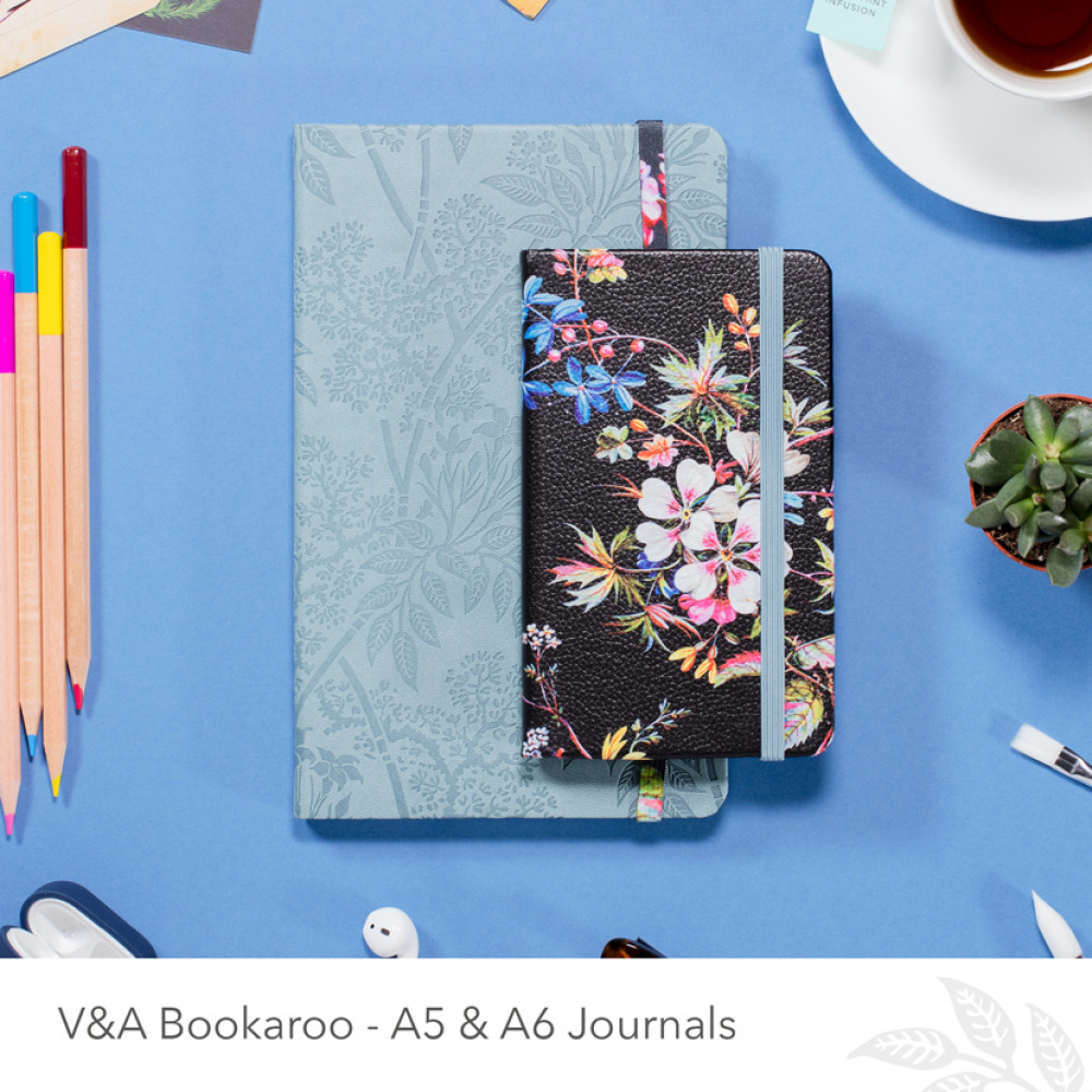 Working In collaboration with the V&A, we have carefully selected this William Kilburn 'printed cotton floral' design from the museum's holdings of textile and wallpaper design due to its fabulous vibrant colours set against a dark background. We have then skilfully applied this to six of our best selling Bookaroo lifestyle and stationery products, creating a brand new delightful collection to enjoy.
