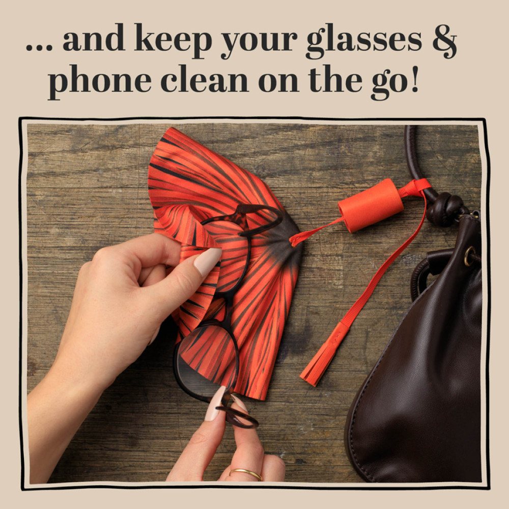 Tie to your bag and keep your glasses and phone clean on the go