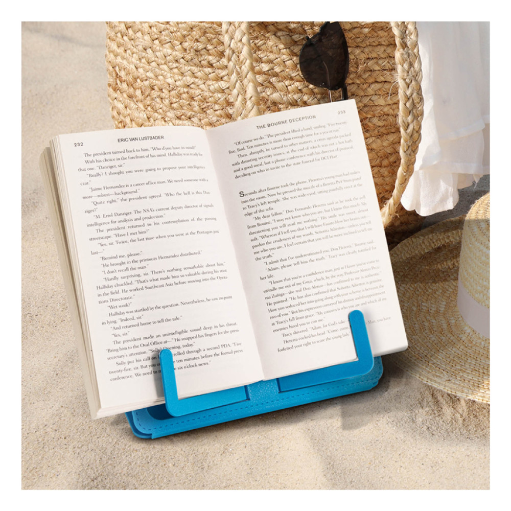 Out in the city, about in the country or enjoying a sunny day at the beach don't forget this handy and portable reading rest to aid your enjoyment. Just add book or tablet and hit the relax button! This cleverly designed reading gadget folds down flat as pancake to take around wherever you want to read. Wipes clean too if you get it messy!
