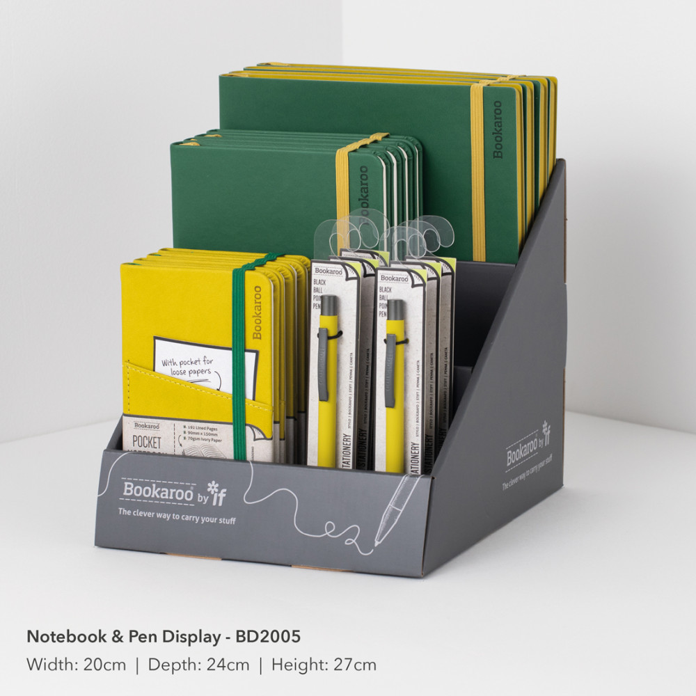 Just for you, we have taken our best selling Bookaroo products (added some absolutely brilliant brand new ones) and put them together in complementary colour sets to make it easier for you to buy and hopefully encourage your customers to make multiple 'mix & match' purchases. In eye catching Forest Green and Chartreuse this makes a fabulous and impactful range perfect to invest in for all year round giving. With lots of different merchandising options available too!