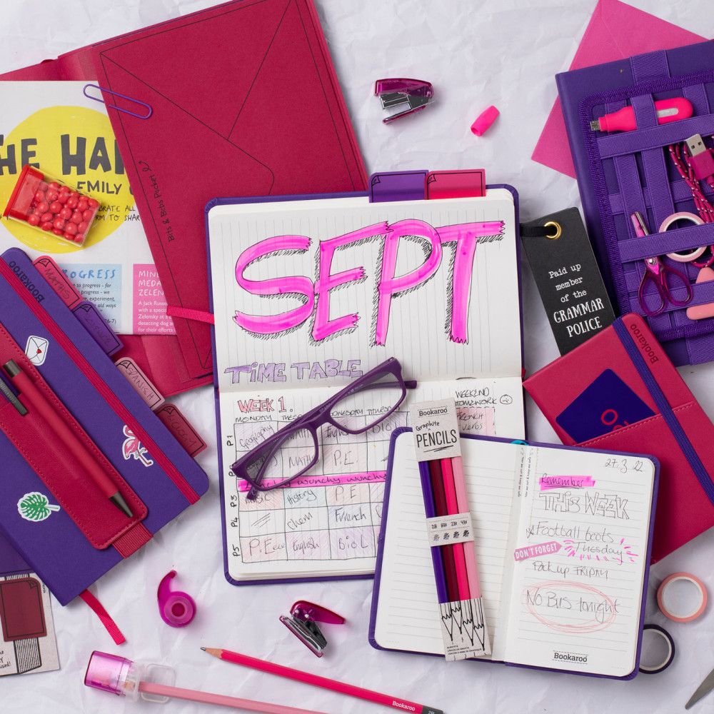 Clever co-ordinated stationery in brilliant Purple & Pink