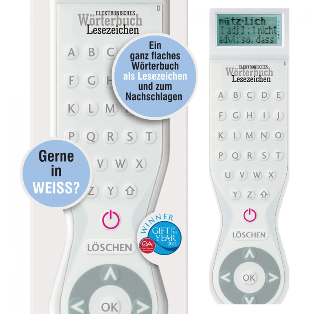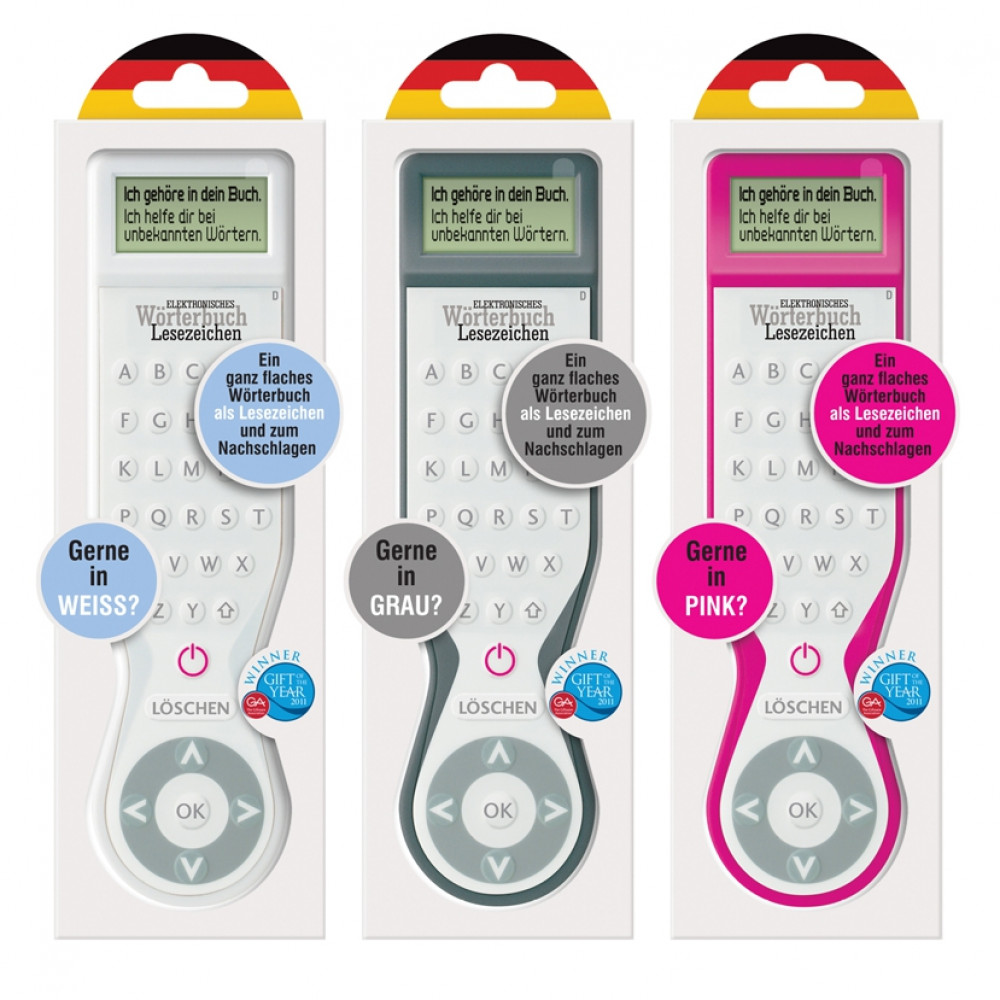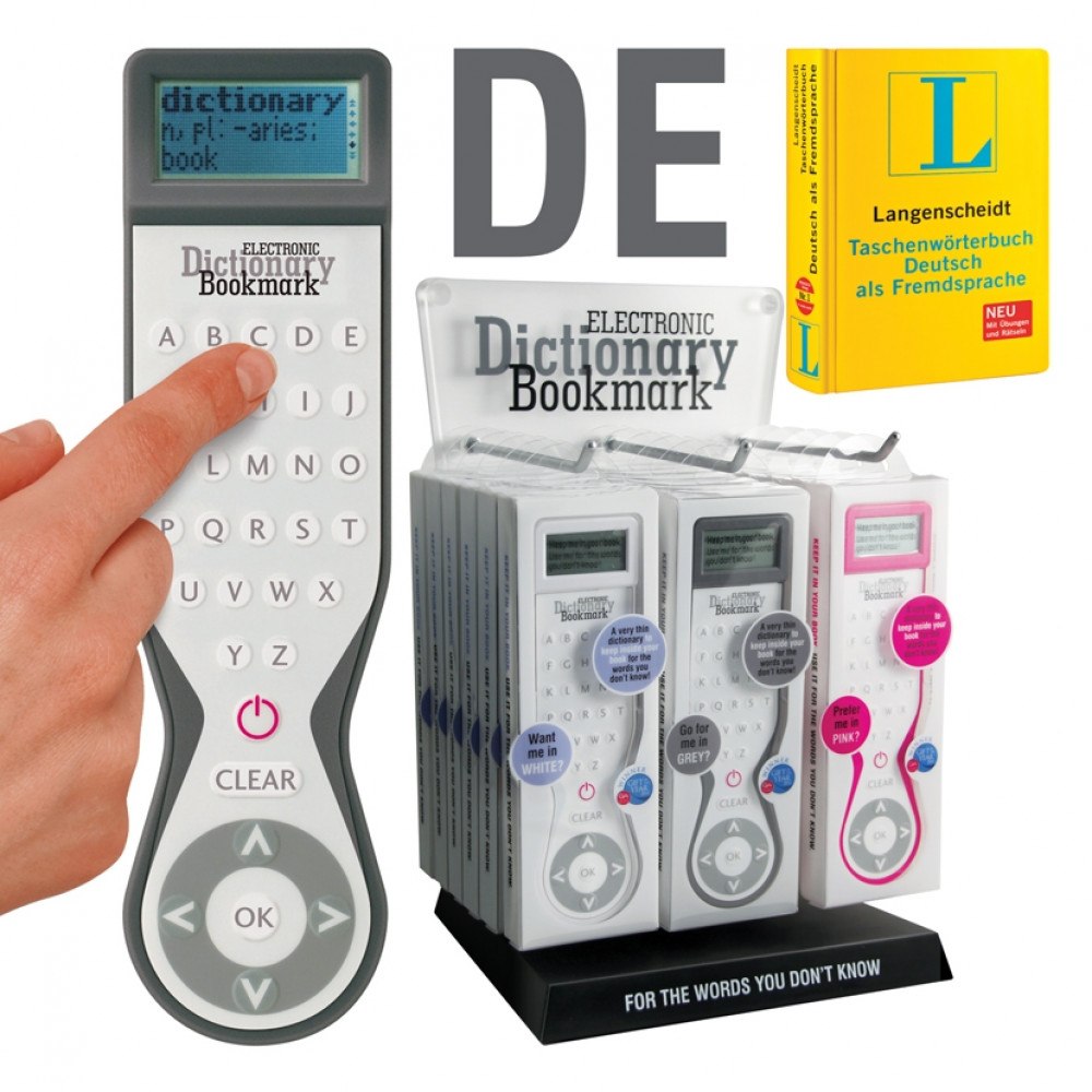 Available in 5 language variants, this easy-to-use, award-winning product has thousands of word definitions literally at your fingertips. Type in your word, press OK and your answer is displayed. So thin it slips in to bookmark your page!