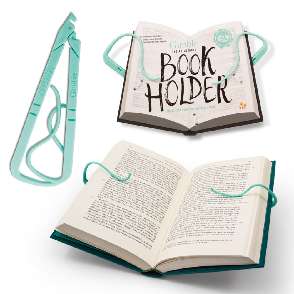 The perfect reading partner at home or away on your travels. From your smaller paperbacks up to the larger textbooks, Gimble will handle them all with ease leaving you to enjoy life completely ‘hands free'. Folds down neatly and compactly after use to pop into your pocket or bag.