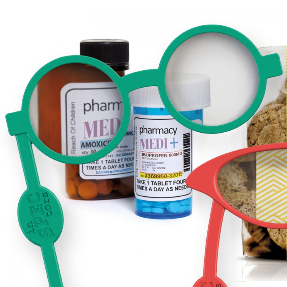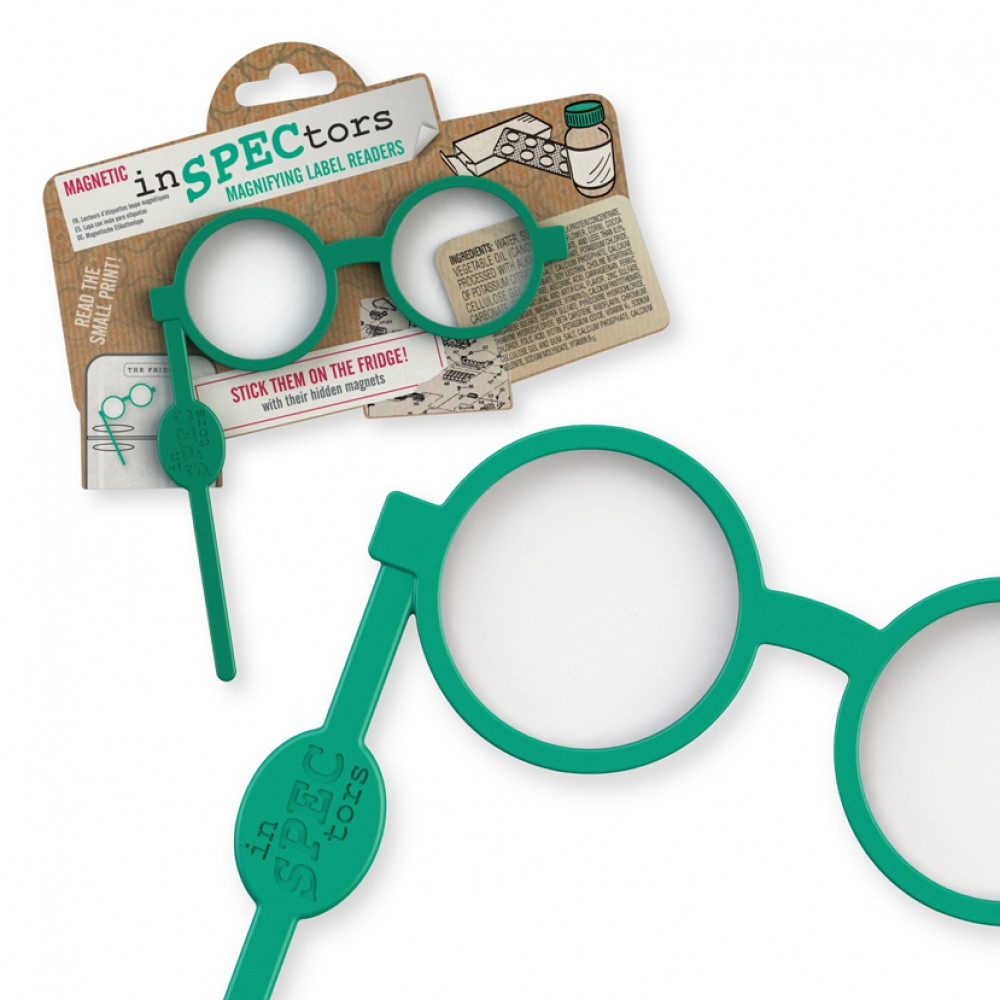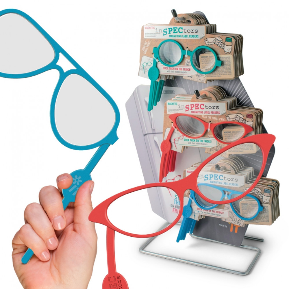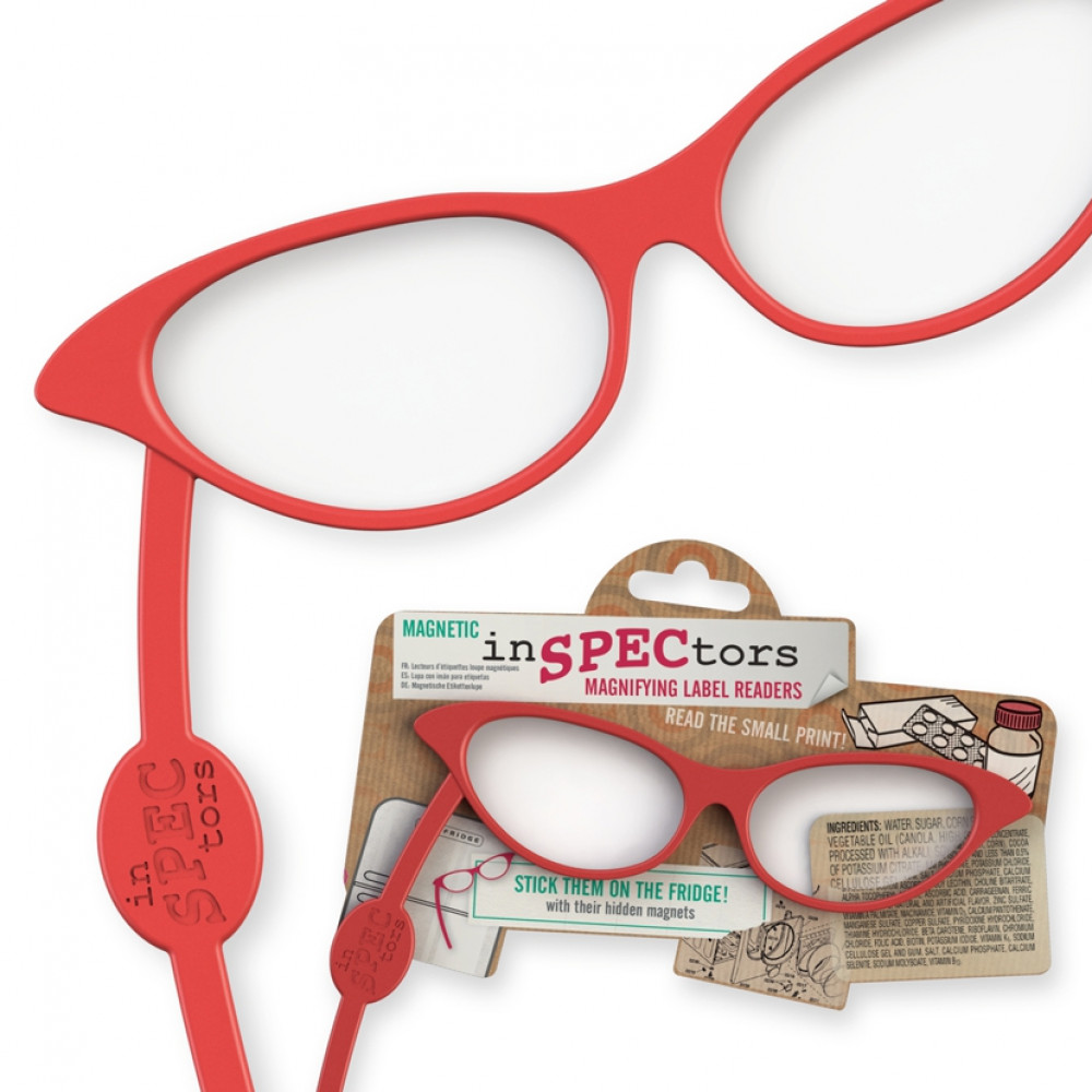 If you increasingly find yourself squinting at your pills or peering at the sugar content, inSPECtors are our priceless magnetic magnifying label readers for just such frustrating occasions! Keep them handy on your fridge - you'll need them often. Available in three groovy frame styles.
