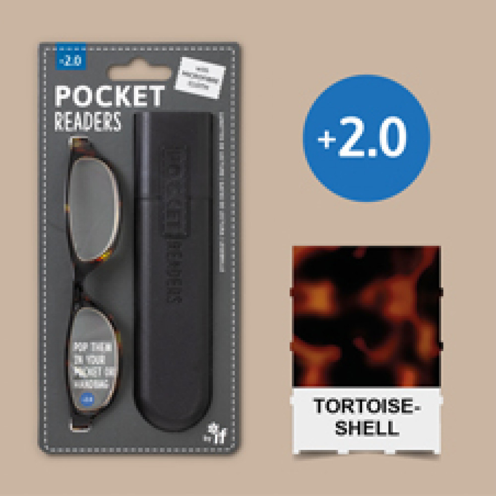 If you need glasses for reading, you'll know how frustrating it is when you don't have them with you. Pop a pair of these very wearable and on-trend specs in your pocket or bag and never be without! Deliberately small, but definitely not compromised on comfort or quality, Pocket Readers are manufactured to a high spec by a top optical manufacturer and are designed in six of the top selling frame colours... something for everyone! And we've included a colour co-ordinated stylish case to keep them scratch free... with a little microfibre cloth to keep them clean.