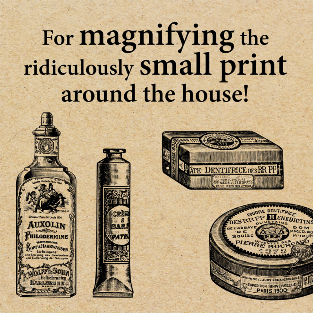 A very nice thing to own for anyone who reaches for their glasses whenever there is small print to read. Shaped and styled like vintage lorgnettes but contemporary enough to sit on an IKEA desk or magnetise to a modern fridge door. Keep them handy for when you need a little bit of help with warnings, ingredients or instructions!