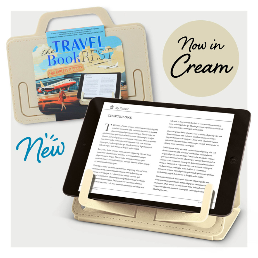 Works with books and tabletsLightweight and portableFolds down flat to carryEasy wipe cleanNEW Cream addition