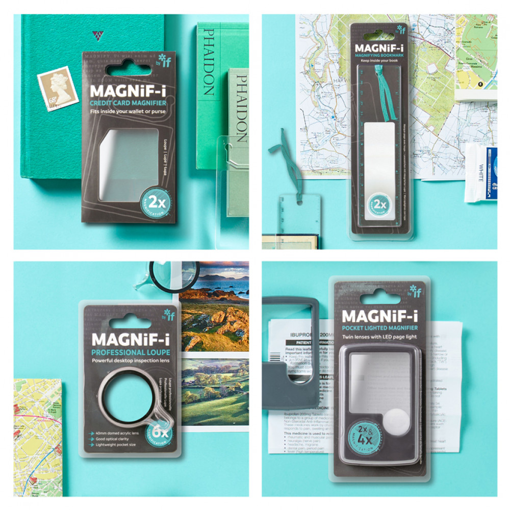 Contains:6 x MAGNiF-i A5 Sheets6 x MAGNiF-i A4 Sheets6 x MAGNiF-i Magnifying Bookmark6 x MAGNiF-i Credit Card Magnifier6 x MAGNiF-i Pocket Lighted Magnifier3 x MAGNiF-i Professional Loupe3 x MAGNiF-i Large Dual Focus Magnifier (75mm)
