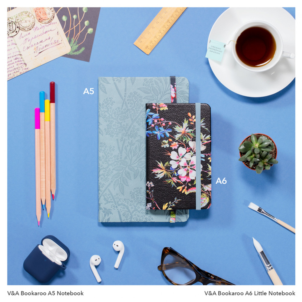 Working In collaboration with the V&A, we have carefully selected this William Kilburn 'printed cotton floral' design from the museum's holdings of textile and wallpaper design due to its fabulous vibrant colours set against a dark background. We have then skilfully applied this to our best selling Bookaroo lifestyle and stationery products, creating a brand new delightful collection to enjoy.