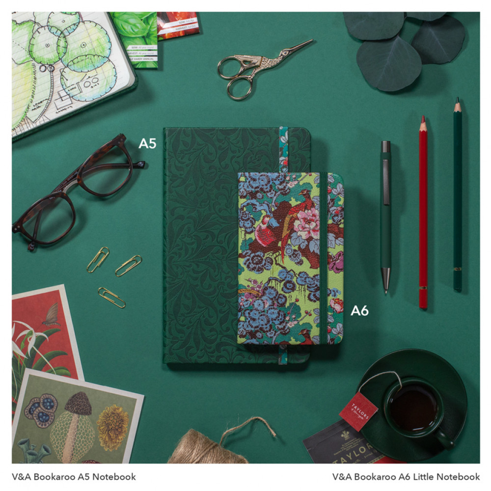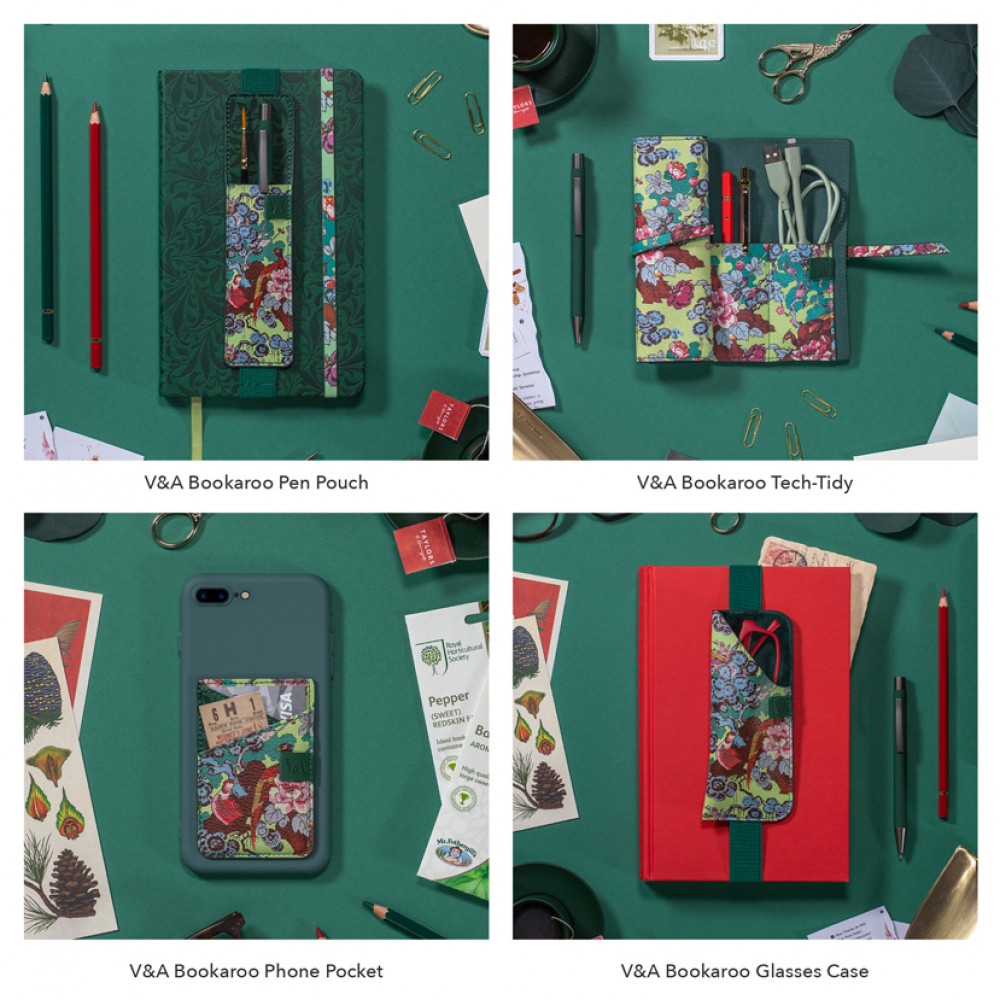 Working In collaboration with the V&A, we have carefully selected this Morton Sundour 'Chinoiserie furnishing fabric' design from the museum's holdings of textile and wallpaper design due to its on trend glorious green hues and beautiful bird motif. We have then skilfully applied this to six of our best selling Bookaroo lifestyle and stationery products, creating a brand new delightful collection to enjoy.